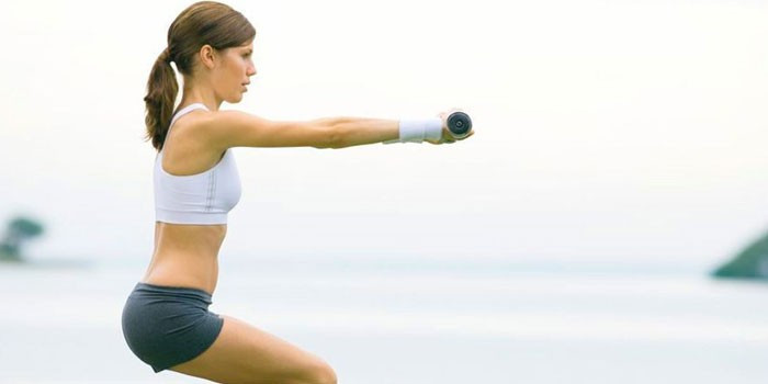 - Гантель или блин могут быть размещены на животе, но не тяжелые (примерно 1,5-3 кг). Руки поддерживают вес.