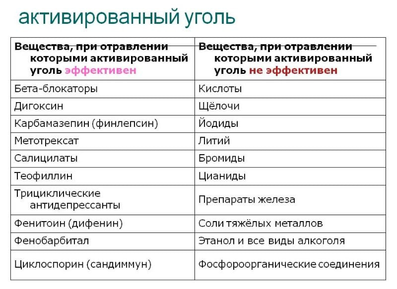 Поэтому, помимо токсичных веществ, он адсорбирует макро / микроэлементы (витамины, минералы), исключая их из процесса пищеварения, лишая организм необходимых питательных веществ. Уголь также снижает концентрацию лекарственных препаратов при одновременном использовании.