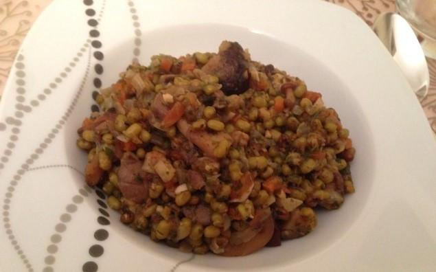 - Когда маш готов, добавьте туда 100 гр. сливочного масла. Каша должна быть густой, но не пюре – горошинки должны частично сохранить свою форму.