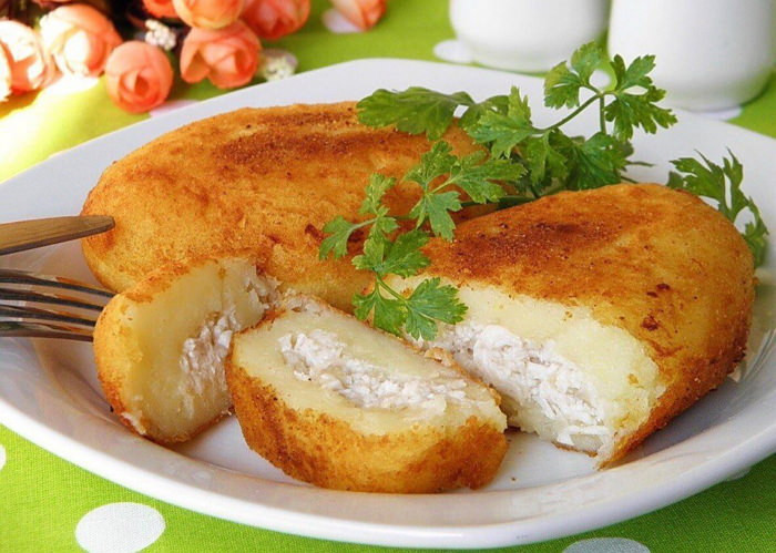 В масленицу не едят мяса. Главным символом этого праздника являются, разумеется, блины, коих существует бессчётное количество – пшеничные, гречневые, манные, дрожжевые, на закваске, заварные, с припеком и прочая, и прочая. Но про блины все и так знают, а мы попробуем разобраться, что приготовить на масленицу, кроме блинов. Уместными на столе будут вареники с картофелем или творогом, картофельные драники. Ну, и, разумеется, различная выпечка – без неё празднику не быть. Сайт BystryeRecepty.ru предлагает вам очень интересную подборку рецептов на масленицу.Картофельные пряженцы с куриной начинкой