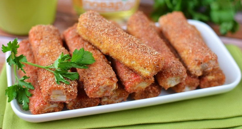 - Жареные крабовые палочки. Смешайте панировочные сухари с измельченным чесноком и паприкой. Обмакните крабовую палочку во взбитое яйцо, потом в панировочную смесь. Обжарьте на растительном масле со всех сторон. Подавайте горячими с острым соусом.