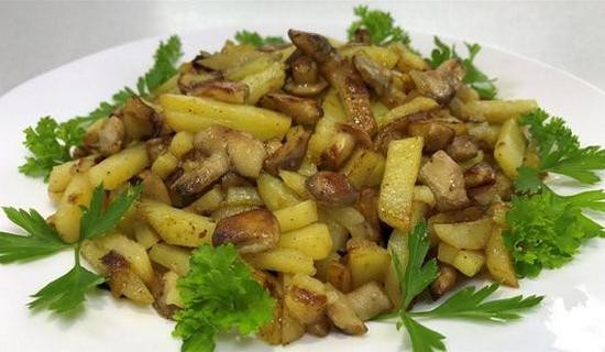Совет! Среди нас много любителей жареного картофеля с маслом. Картофель рекомендуется жарить отдельно от грибов. А затем готовые компоненты объединяются в одно блюдо и подаются.