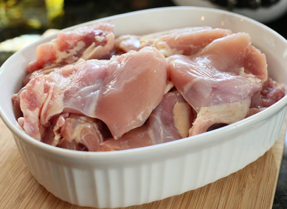 - Вымойте тушку. Для маринада на основе кефира лучше использовать жирные части курицы (голень, бёдрышки, крылья). Порубите птицу на равные кусочки, по желанию удалите кожу.