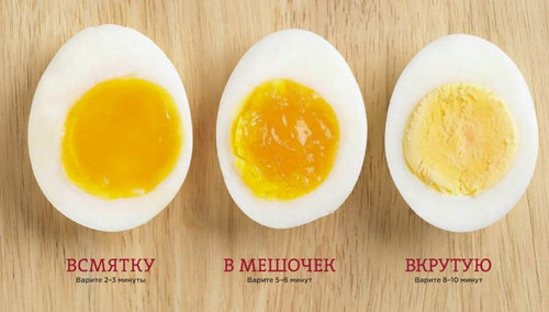 - 2 минуты, чтобы получить сырой желток и очень мягкий белок;