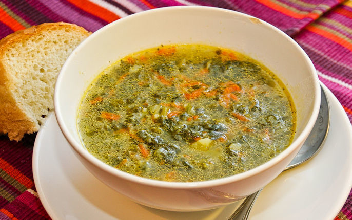 - Крапивные щи можно приготовить как на мясном бульоне, так и на овощном отваре. В обоих случаях кушанье получается вкусным и ароматным. Я обычно использую телячий бульон. В нем очень мало жира и много питательных веществ.