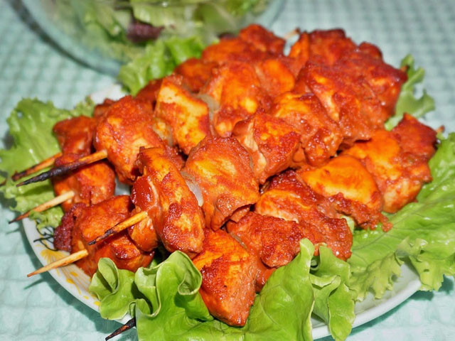 - Важно не пережарить мясо, так как кусочки на шпажках намного меньше чем на больших шампурах и поэтому засушивается быстрее.