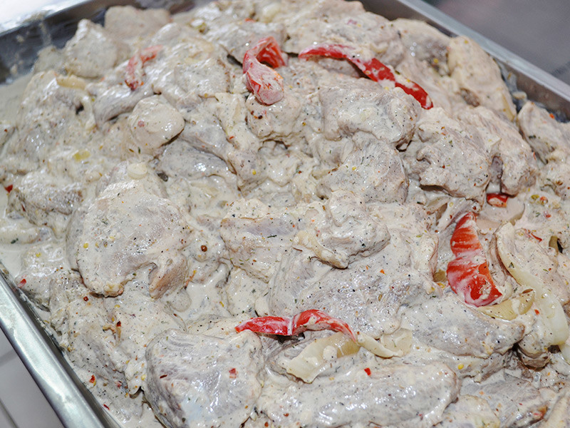 - Полученной смесью залить шашлык, накрыть крышкой и оставить на 4 – 6 часов в прохладном месте.