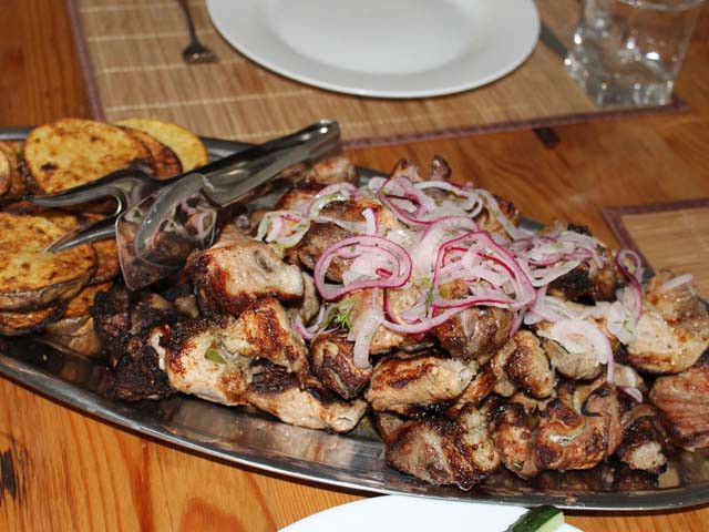 Шашлык из баранины по-армянски с помидорами и луком