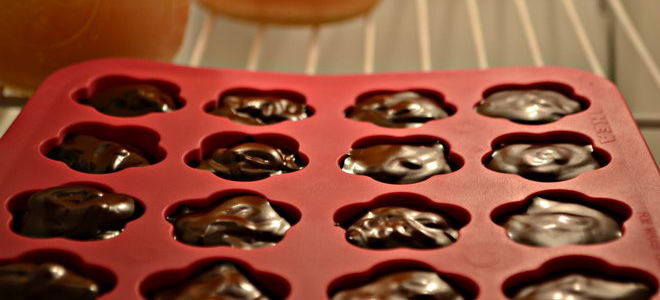 - За это время приготовить начинку и в измельченном виде ввести, размешав до однородности, в шоколадную массу перед разливом по формам.