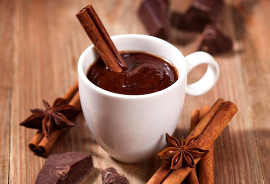 - Соединяем эту густую массу с жидкостью со специями, доводим до кипения и убираем с огня. Убираем корицу и наливаем напиток в чашки. Сверху украшаем шоколад взбитыми сливками либо какао.