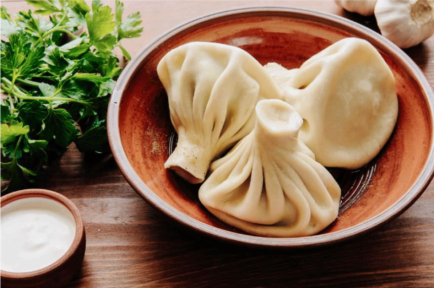- Сначала откусывают и выпиваю весь сок, а затем съедают оставшийся фарш с тестом. Хвостик в конце откладывают на край тарелки, он получается слегка жестковат, поэтому его не принято есть. Блюдо в целом получается очень вкусное, ароматное и сытное. Одному человеку вполне хватит на порцию 3–4 штуки.