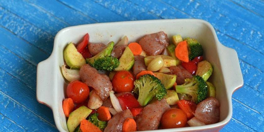 Данный рецепт хорош тем, что, во-первых, продукты не тушатся, а запекаются, а это, несомненно, является более полезным видом тепловой обработки. Во-вторых, в приготовлении используется такая вкусная специя как паприка. Эта специя прибыла к нам на стол из Южной Америки сравнительно недавно. Для её приготовления сушат и перемалывают сорта сладкого и слабожгучего перца, благодаря чему специя имеет огненный цвет, за счёт которой блюдо приобретает необычную сладковатую пряную нотку, с небольшой едва заметной горчинкой, а образование аппетитной румяной корочки гарантировано.