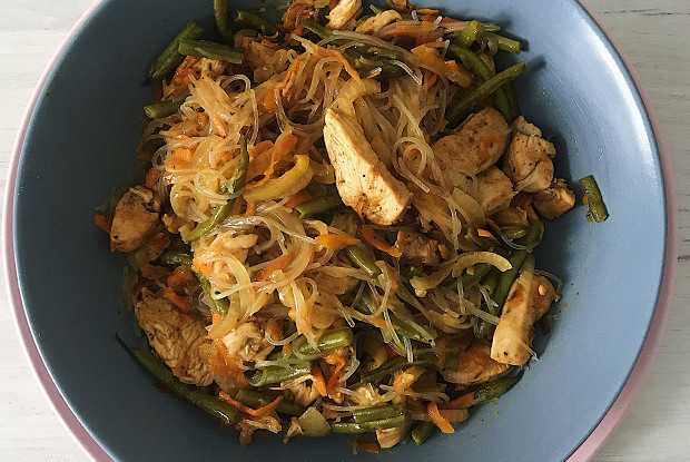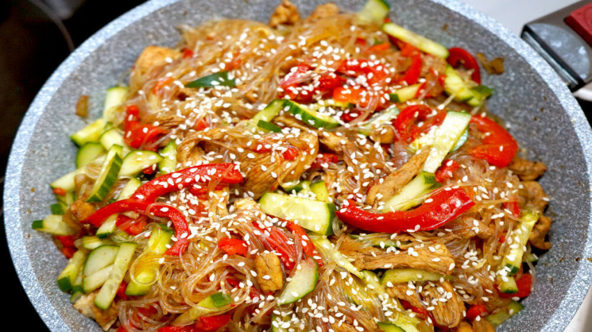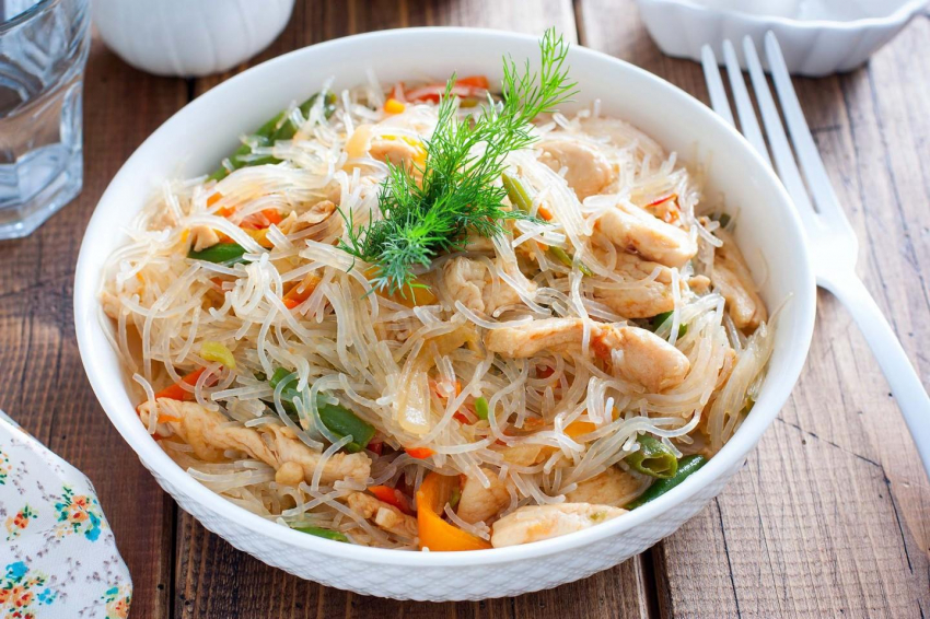 Фунчоза с курицей и овощами или как ее еще называют, стеклянная лапша, набирает все большую популярность среди гурманов. Стеклянной она прослыла вовсе не из-за состава. Просто в готовом виде она прозрачная, как стекло. На ее основе готовят множество блюд.