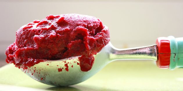- Взбивая остывшие плоды в блендере, добавляют лимонный сок, разливают по формам и только после всего этого размещают в морозилке до полного замерзания.