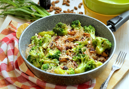 Еще одни невероятно удачным рецептом считается фунчоза с креветками и грибами. В процессе приготовления используется приваривание в воде и жарка на растительном масле. Можно создать чрезвычайно гармоничную вкусовую композицию, если присоединить определенные виды овощей, к которым относятся перец и цуккини.