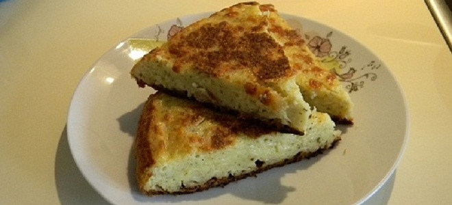 - Затем разогреть на огне сковороду с растительным маслом и быстренько вылить на него полученное сырное тесто. Закрыть крышкой и обжаривать на медленном огне в течение 3-5 минут. После чего перевернуть и обжаривать с другой стороны без крышки на среднем огне в течение нескольких минут, до образования хрустящей корочки.