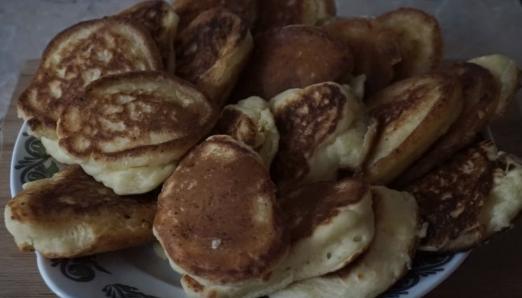 - Жарим оладьи на огне чуть меньше среднего по 3-4 минуты с каждой стороны.