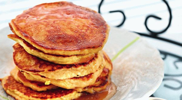 Ну и самый необычный в данной подборке рецепт — оладьи с тыквой. Очень вкусное и полезное лакомство для детей.