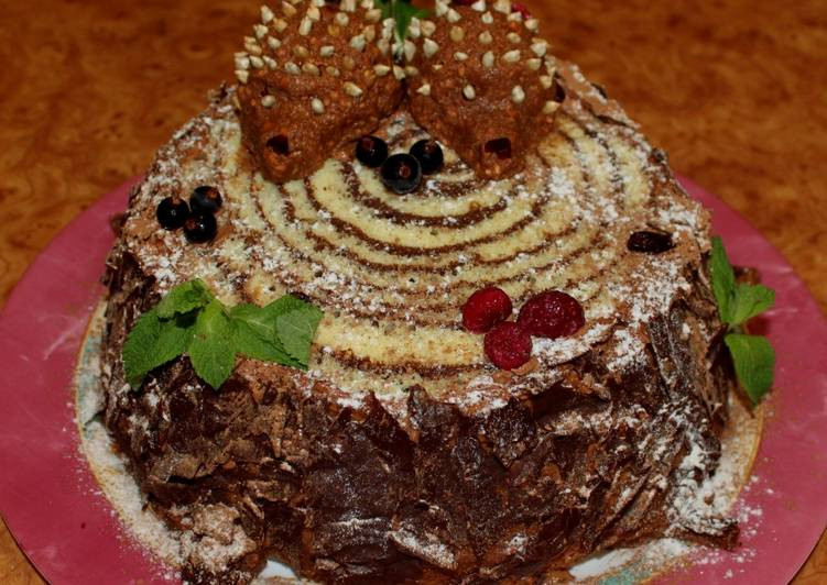 Торт Трухлявый пень — это очень красивый и вкусный торт, который под силу приготовить даже начинающей хозяйке. Главное — следовать пошаговому рецепту с фото.Тесто для торта Трухлявый пень: