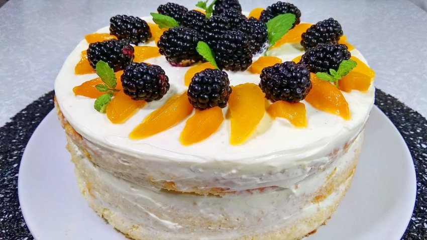 Самый простой рецепт бисквита с творожным кремом и фруктовой прослойкой