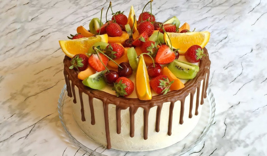 - Вот и весь секрет, как приготовить бисквитный торт с фруктами и творожным кремом. Осталось украсить его сверху по желанию и дать ему минимум пару часов пропитаться. Красота, приятного аппетита!