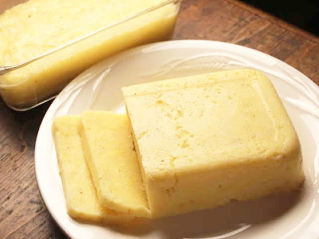 Если добавить в предыдущий рецепт яичные желтки, чуть меньше масла и варить смесь на паровой бане около 25 минут, то можно получить мягкий сливочный сыр, который удобно нарезать ножом.