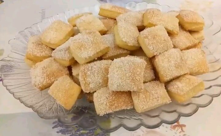 Сверху тесто засыпаем сахаром и ванилином. По желанию можно добавить какао, корицу, изюм или кокосовую стружку. - Теперь режем тесто на квадратики примерно 3*3 см.