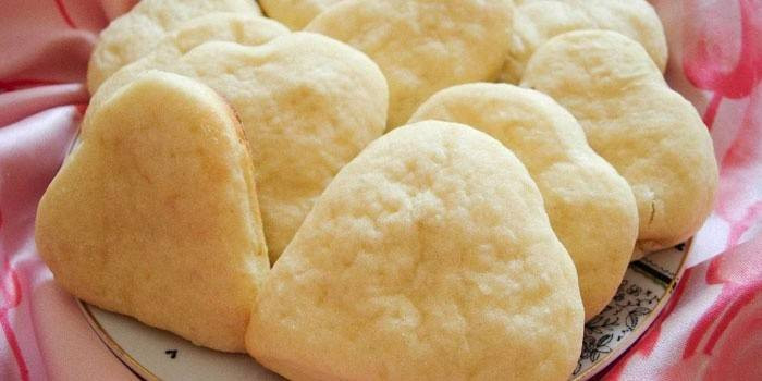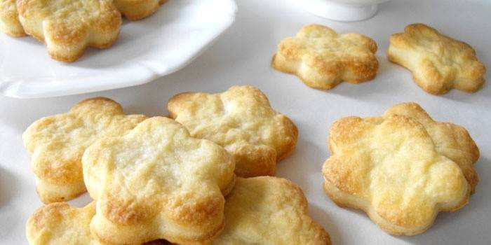 Особой привлекательностью обладает творожно-сметанное печенье, потому что за счет добавления творога тесто становится невероятно нежным. Изделия на творожной основе получаются вкусными и мягкими, но обладают повышенной калорийностью. В рецепте нет сахара, но его всегда можно добавить тем, кто любит изделия послаще. Есть печенье лучше сразу, пока оно не сильно остыло.