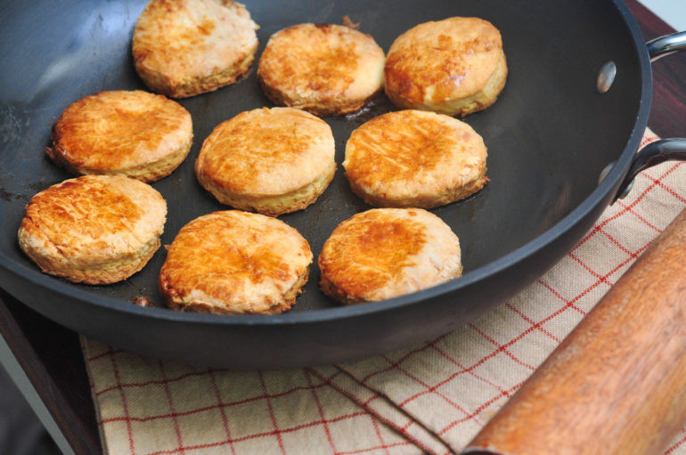 - Разогреть сковороду с антипригарным покрытием и обжарить печенье по 3 мин. с каждой стороны.