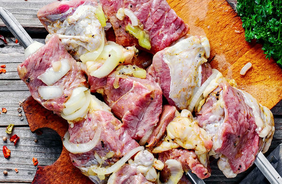 Лучше выбирать куски с небольшими прожилками жира. У свинины это – шейка, чуть «суше» вырезка и карбонат, или непостный окорок. Бараний шашлык хорошо получается из ребрышек, корейки или вырезки. Зажарить на углях можно и говядину. Только надо будет подольше ее мариновать.