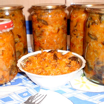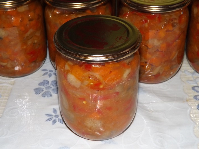 Закуска, приготовленная этим способом, является не только вкусным отдельным блюдом, но и может использоваться в качестве начинки для пирогов и пирожков. Просто пальчики оближешь, поэтому обязательно заготовьте такой овощной салат на зиму.