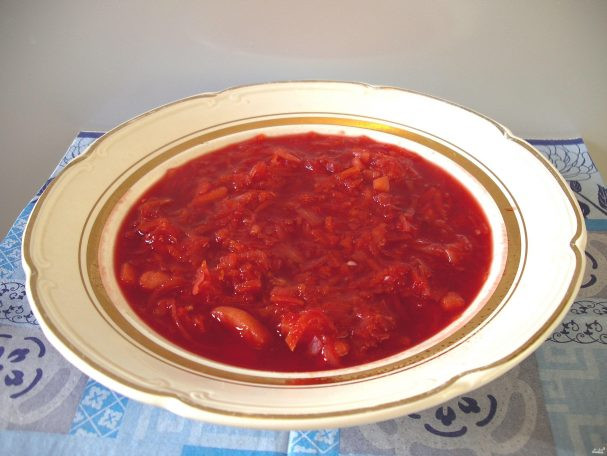 - После капусты добавляем в кастрюлю зажарку, доводим до кипения и пробуем, при необходимости добавляем сахар. И в заключении добавляем в борщ мелко нарезанную зелень и выдавленный через пресс чеснок. Для усиления вкуса можно добавить 1 ст.л сухого паприка. Все обязательно должно закипеть.