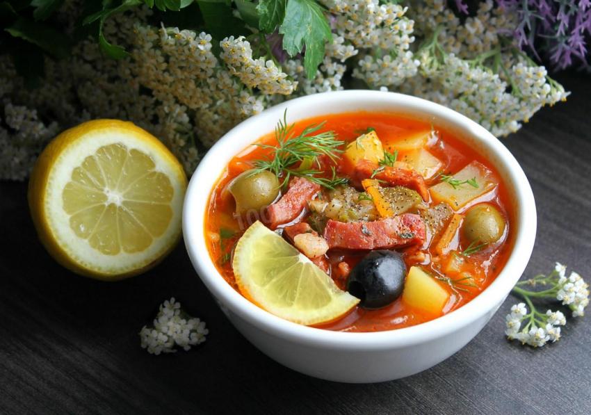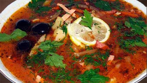 После шумного застолья, наверняка и в вашем холодильнике остаются продукты, которые отлично впишутся в состав нашей обеденной соляночки. Этот рецепт имеет сотню аналогов, поэтому, не бойтесь импровизировать, заменяя одни ингредиенты на другие, экспериментируйте, господа! Классическую русскую солянку невозможно испортить, вложите максимум фантазии, и Ваши домочадцы будут наслаждаться изумительным обедом! Бульон варят на говядине, либо курице, главное, чтобы он получился наваристым.