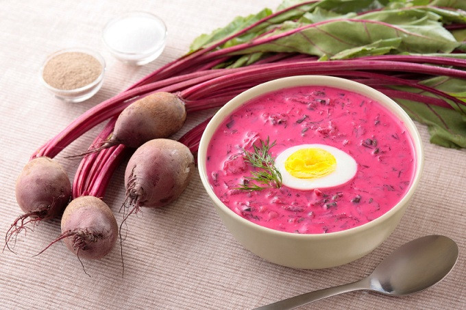 Свекольный суп с добавлением кефира относится к литовской традиционной кухне. Такое блюдо прекрасно спасает в летнюю жару, является источником витаминов, а также необходимых микроэлементов.