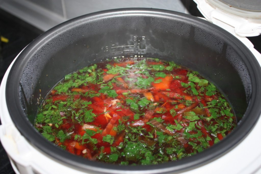 - В этом рецепте используется горячая вода, поскольку режимом готовки будет выбрано «тушение». Фактически суп кипеть при такой программе не будет, а будет только томиться. Также такой метод поможет сократить время готовки.