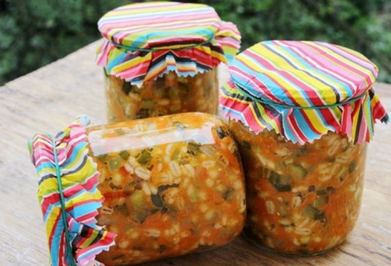 Обычно в рассольник добавляют крупу. Кто-то предпочитает рис, кто-то пшено, но вообще-то этот суп готовится с перловкой. И никто не мешает сделать заготовку для рассольника на зиму уже с этим ингредиентов.Крупу перловки (200 г) отварить до готовности. Нарезанные небольшими кубиками огурцы (1,5 кг), по полкило лука и морковки, измельчёнными как для супа, сложить в кастрюльку. Туда же влить растительное масло (100 мл).