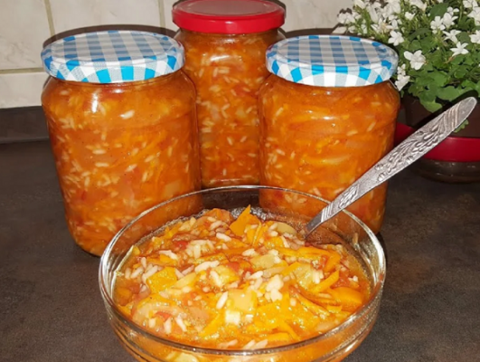 - Горячую закуску раскладываем по баночкам, хорошо закупорив крышками.