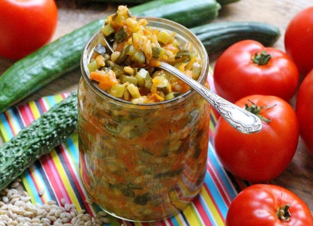 Заготовка на зиму рассольника с перловкой и свежими огурцами