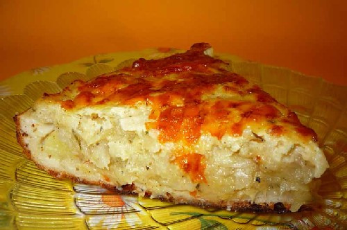 Еще один простой рецепт для ленивых… то есть для занятых людей).Заливным он называется потому что готовится на жидком тесте. Выкладывается сначала тесто, затем начинка, затем заливается сверху еще тестом.