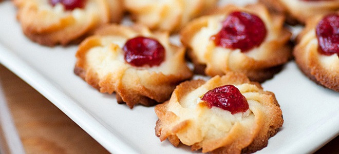 - Выпекать песочное печенье с малиновым вареньем 20 минут при 220 градусах.