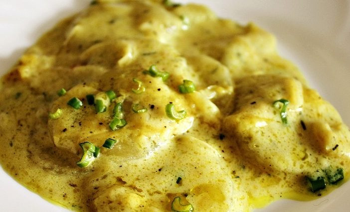 - Теперь блюдо постоянно помешивают, до тех пор, пока сливки не станут густыми. На это обычно уходит около десяти минут. Теперь их можно попробовать, и, при желании, дополнительно приправить солью.