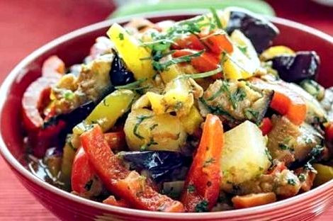 Овощное рагу с кабачками, баклажанами, помидорами и перцем