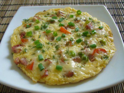 Этот вариант омлета близок к итальянской фриттате. На Апеннинах очень любят омлет с овощами и колбасой: