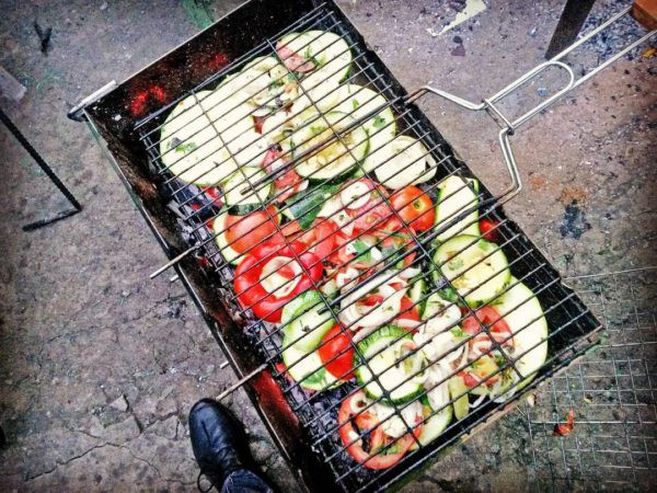 - Готовьте шашлык из овощей на мангале или на ранее разведенном костре.