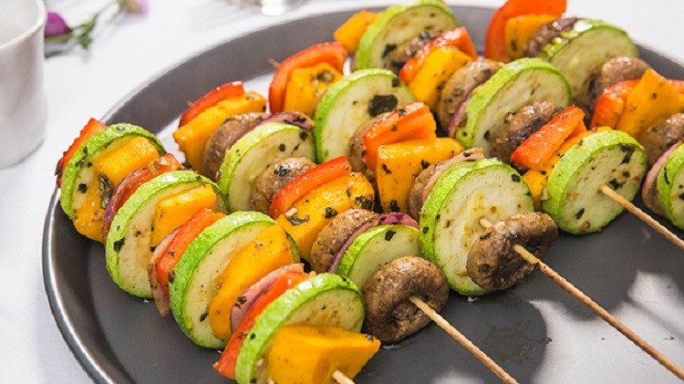 - Готовьте правильный шашлык на огне пока овощи не станут мягкими.