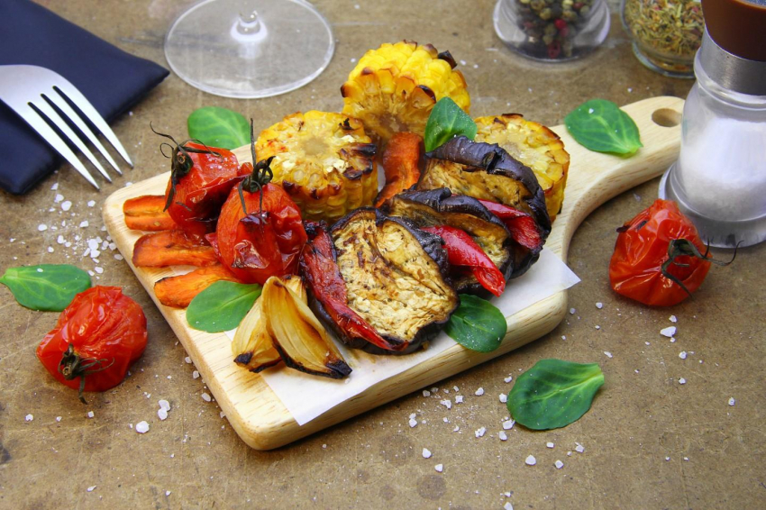 Для запекания идеально подходят мелкие клубни картофеля, кабачки, сладкие болгарские перцы, кабачки и цуккини, половинки репчатого лука и чеснока, сочные томаты, грибы, початки кукурузы;