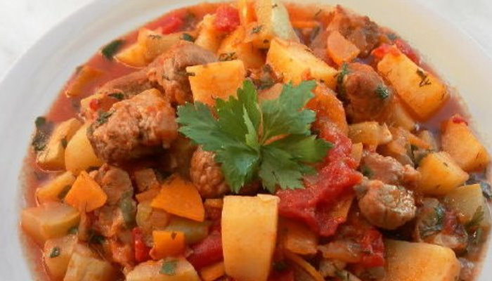 Овощное рагу с мясом, кабачками, капустой и картошкой