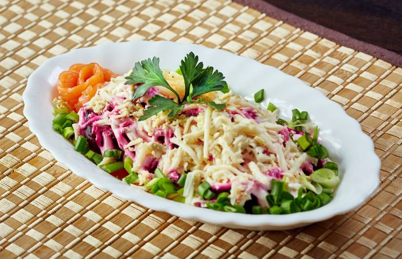 Салат «лосось под шубой» — это новое прочтение привычной классики. Для салата можно использовать любую красную рыбу — лосось, форель, семгу. Овощи в классической версии берутся аналогичные — свекла, морковь, картофель. А еще можно добавить авокадо, яблоко, томаты, баклажаны…Версий множество, пробуйте!