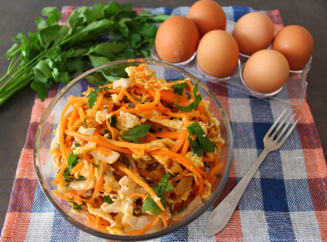 Салат с корейской морковью и курицей — «Грибная поляна»