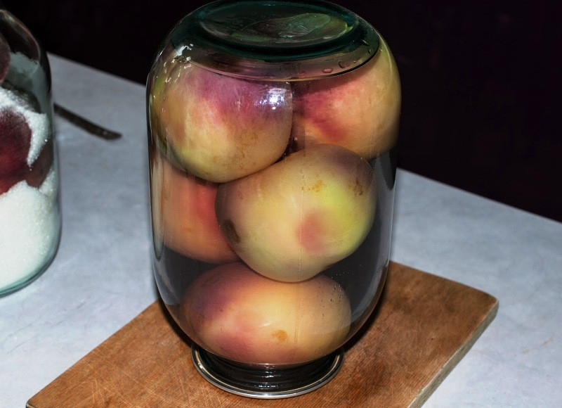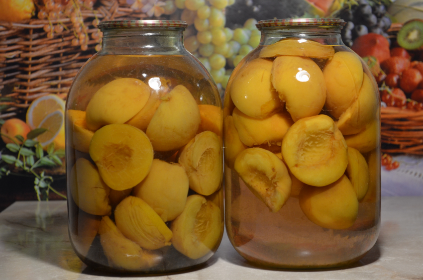 Для такого рецепта лучше взять литровые банки или максимум двухлитровые. Так как для больших банок процесс стерилизации более длительный и половинки могут развалиться.Консервированные половинки фрукта хорошо подходят для приготовления пирогов и десертов.